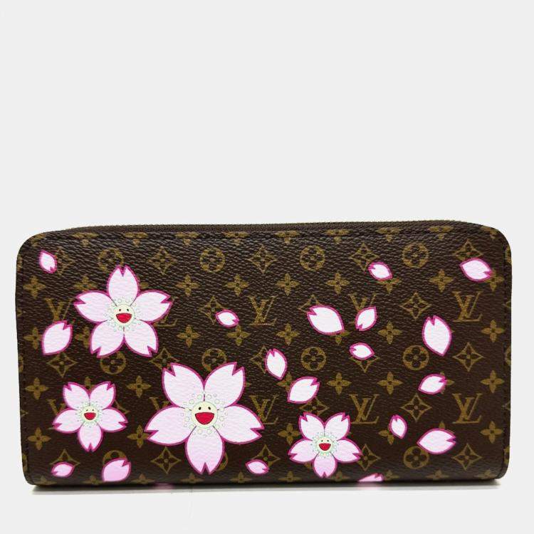 Pre Owned Louis Vuitton Brown Monogram Canvas Takashi Murakami Cherry Blossom Long Zippy Wallet