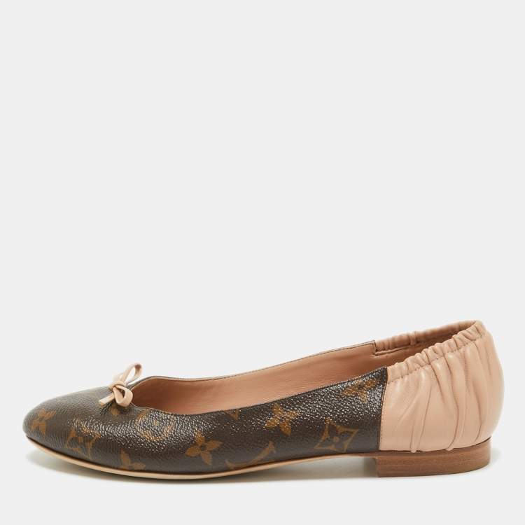 Louis Vuitton Brown/Pink Monogram Canvas and Leather Scrunch Ballet Flats Size 37