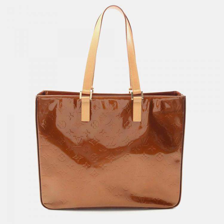 Pre Owned Louis Vuitton Columbus Shoulder Tote Bag Vernis Leather Bronze