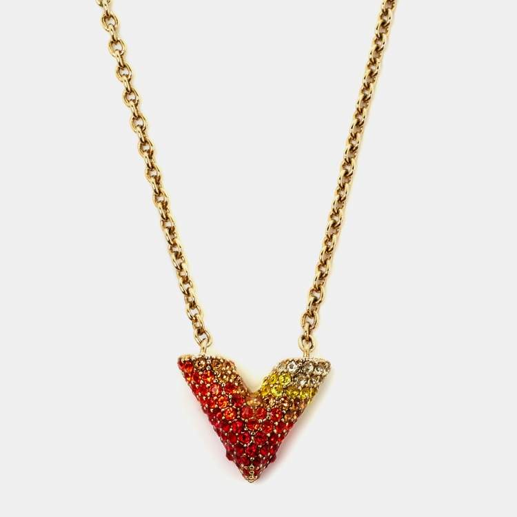 Louis Vuitton Essential V Crystals Gold Tone Chain Necklace