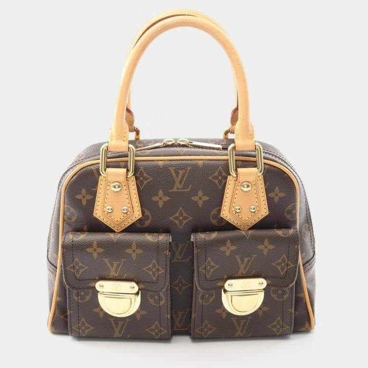 Pre Owned Louis Vuitton Manhattan PM Brown Monogram Canvas Leather Handbag