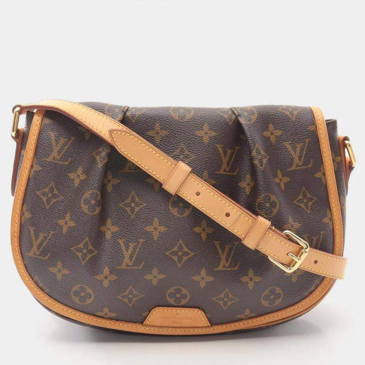 Pre Owned Louis Vuitton Menilmontant PM Brown Monogram Leather Crossbody Bag