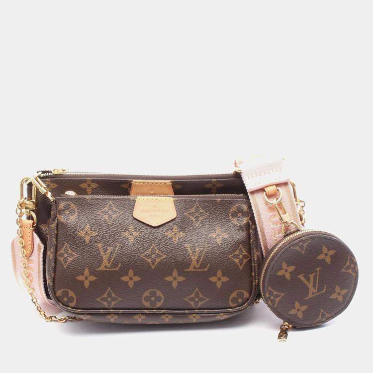 Pre Owned Louis Vuitton Multi Pochette Accessoires Shoulder Bag Coated Canvas Leather Monogram Brown Pink