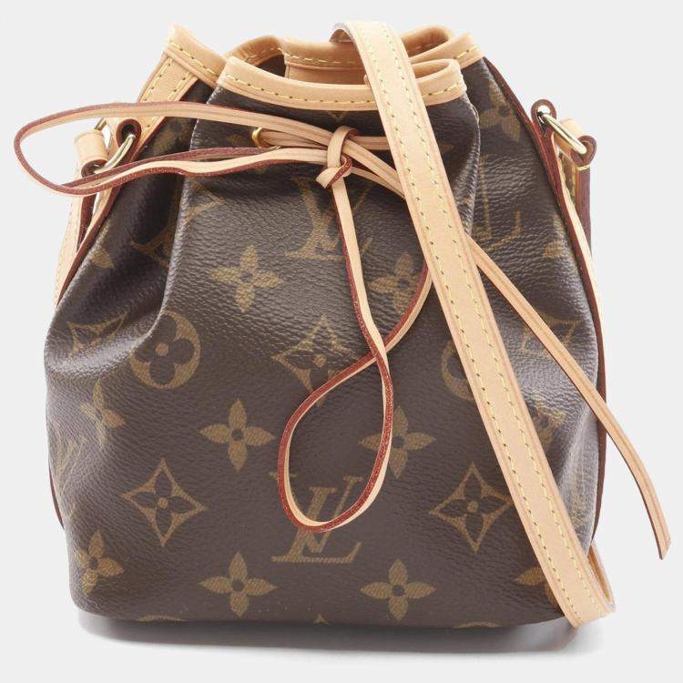 Pre Owned Louis Vuitton Nano Noe Brown Monogram Drawstring Bag