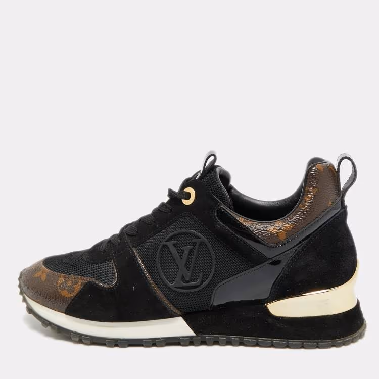 Louis Vuitton Run Away Size 36.5 Black/Brown Monogram Canvas and Suede Lace Up Sneakers