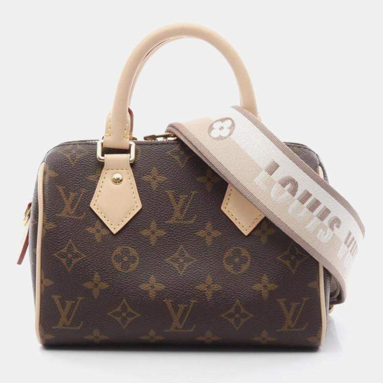 Pre Owned Louis Vuitton Speedy Bandouliere 20 Beige Monogram Canvas Top Handle Bag