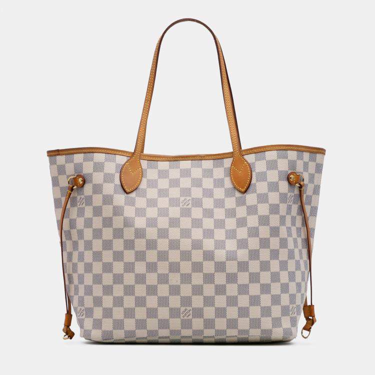 Pre Owned Louis Vuitton White Damier Azur Neverfull MM