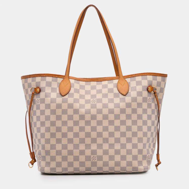 Pre Owned Louis Vuitton White Damier Azur Neverfull MM