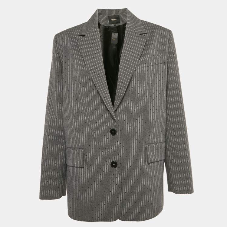 Maje Grey Pinstriped Rhinestone Embellished Blazer S