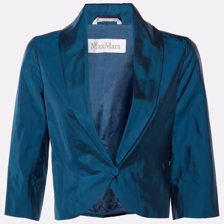 Pre Owned Max Mara Teal Blue Satin Button Front Blazer M