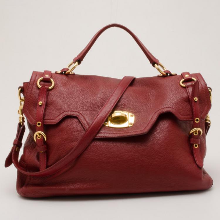 Miu Miu Red Leather Turnlock Satchel