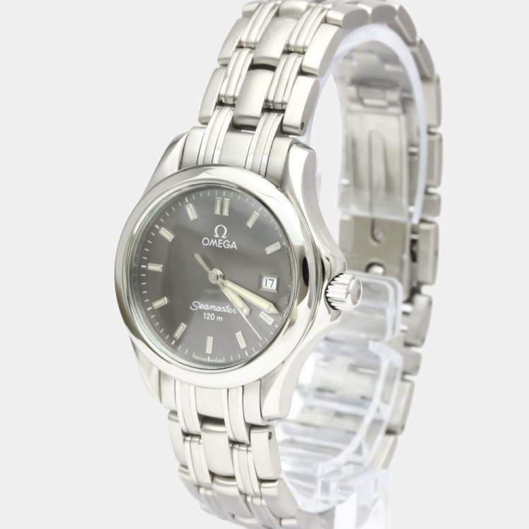 Pre Owned Omega Black Stainless Steel Seamaster 120M Quartz Women's Wristwatch 29 mm