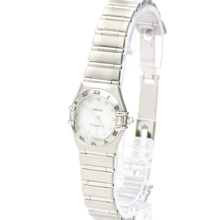 Pre Owned Omega MOP Diamonds Stainless Steel Constellation Quartz 1566.76 Women's Wristwatch 22 MM