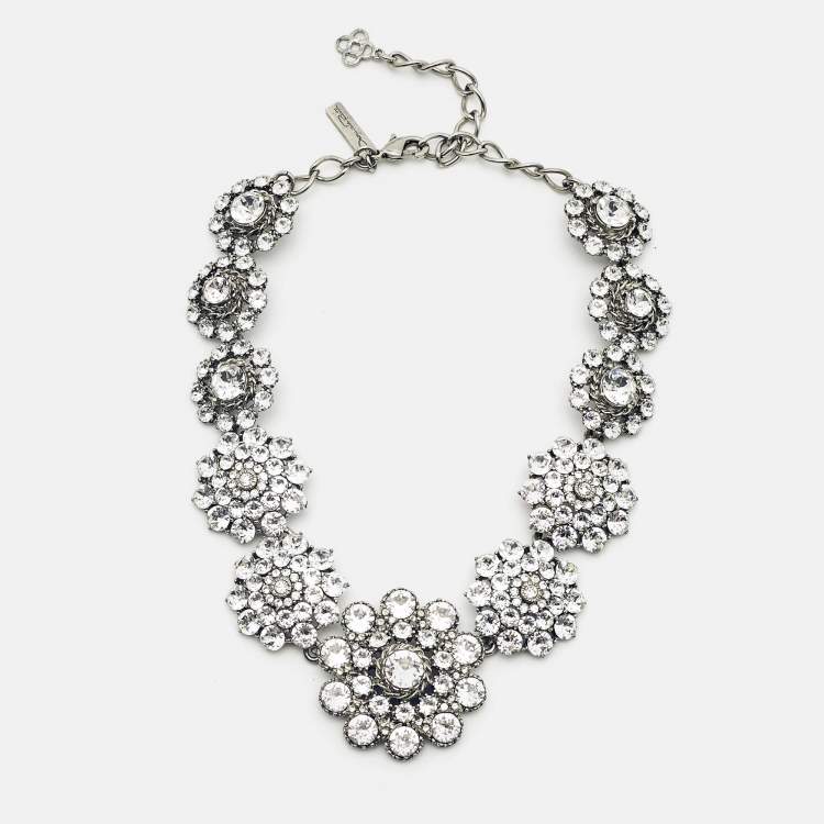 Pre Owned Oscar de la Renta Crystals Silver Tone Necklace