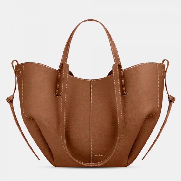 Polene Cyme Mini Camel Grained Edition Calfskin Leather Shoulder Bag