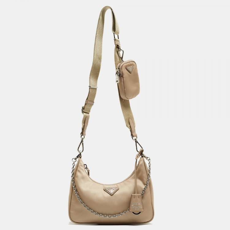 Prada Beige Nylon and Leather Re-Edition 2005 Baguette Bag