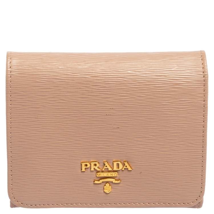 Pre Owned Prada Beige Saffiano Leather Compact Wallet