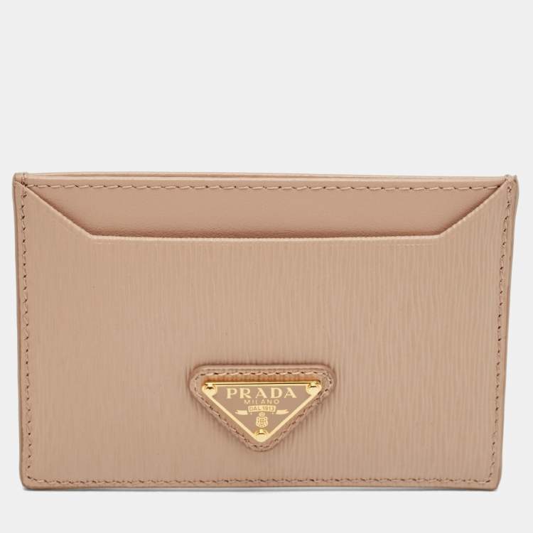 Prada Beige Vitello Move Leather Logo Card Holder
