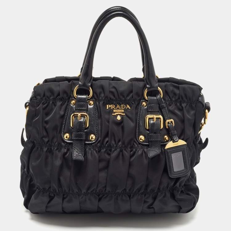 Prada Black Gaufre Nylon and Leather Tote