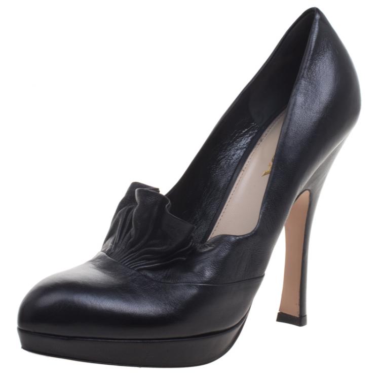 Pre Owned Prada Black Leather Ruffle Platform Pumps Size 39.5
