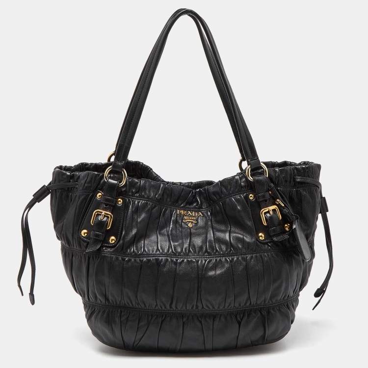 Pre Owned Prada Black Nappa Gaufre Leather Tote