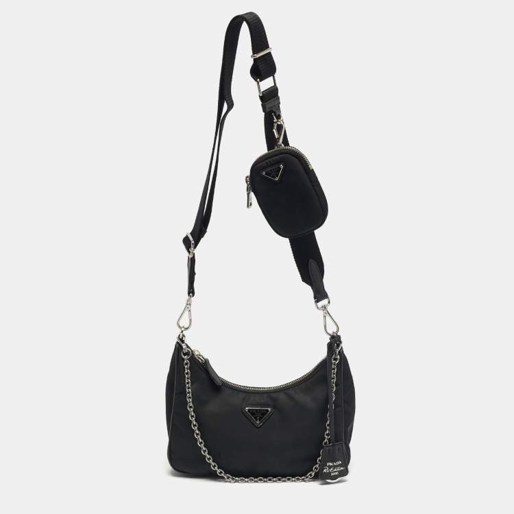 Prada Black Nylon and Saffiano Leather Re-Edition 2005 Shoulder Bag