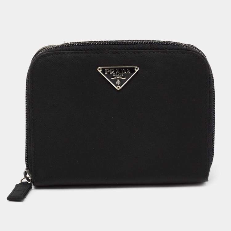 Pre Owned Prada Black Nylon Compact Zip Wallet