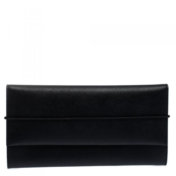 Pre Owned Prada Black Saffiano Leather Travel Wallet