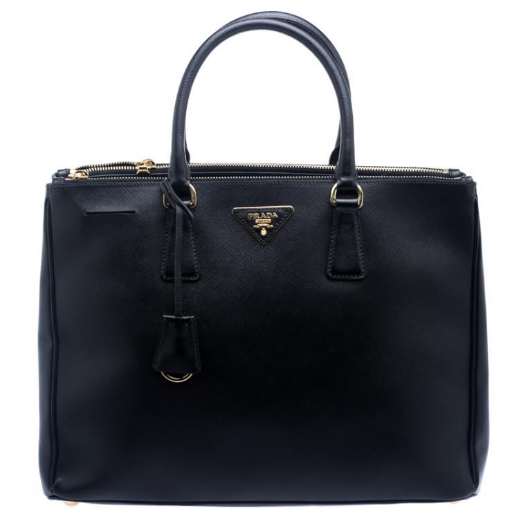 Prada Black Saffiano Lux Leather Large Double Zip Tote