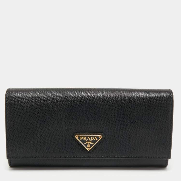Prada Black Saffiano Metal Leather Logo Flap Continental Wallet