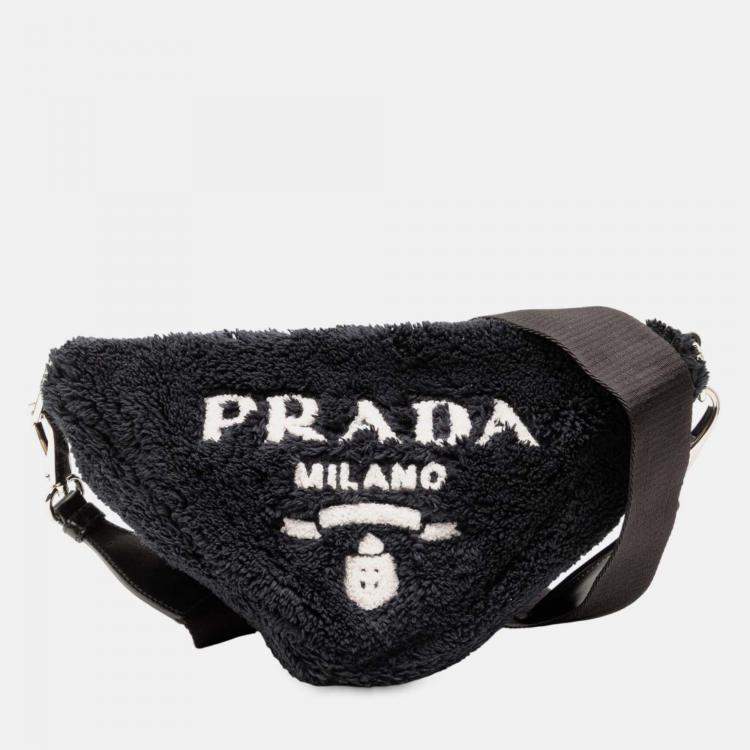 Prada Black Spugna Terry Cloth Triangle Logo Crossbody