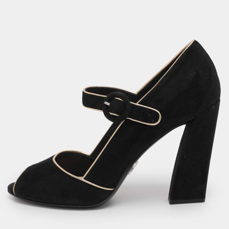 Prada Black Suede Mary Jane Pumps Size 38.5