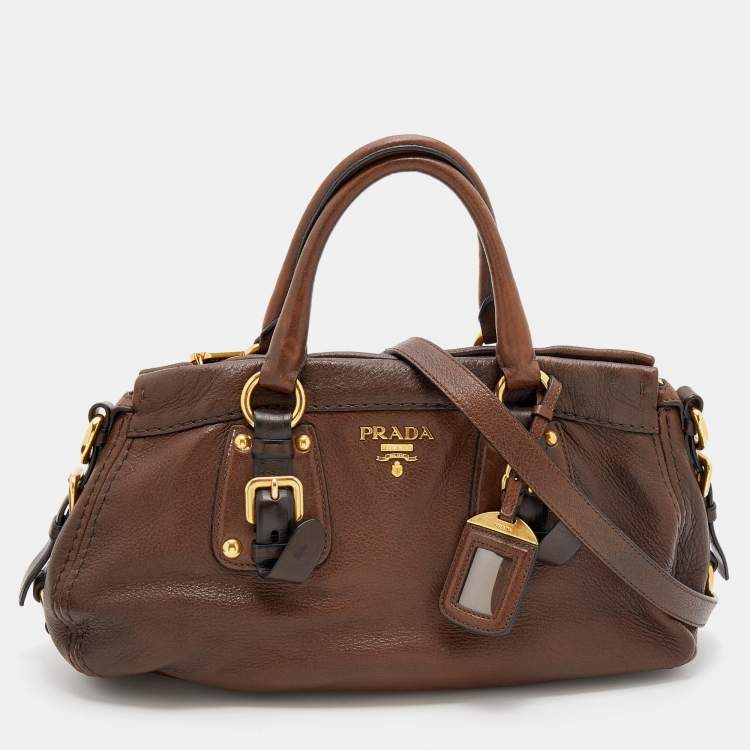Prada Dark Brown Leather Cervo Satchel