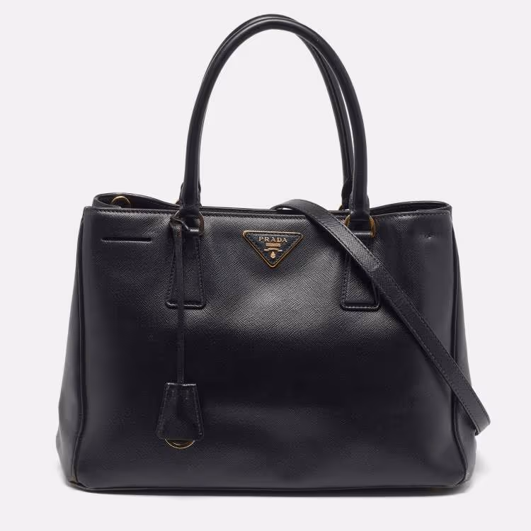 Prada Double Zip Black Saffiano Lux Leather Tote