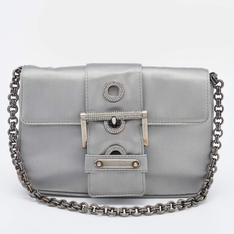 Prada Grey Satin Buckle Chain Bag