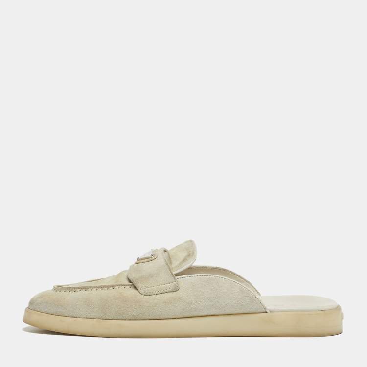 Pre Owned Prada Grey Suede Sabot Mules Size 40.5