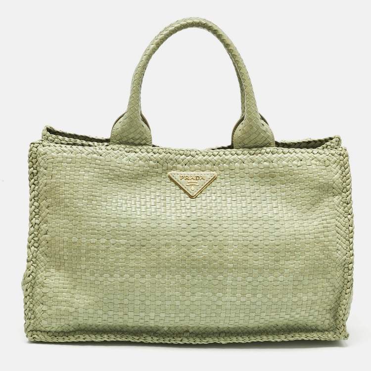 Prada Light Green Madras Leather Woven Tote