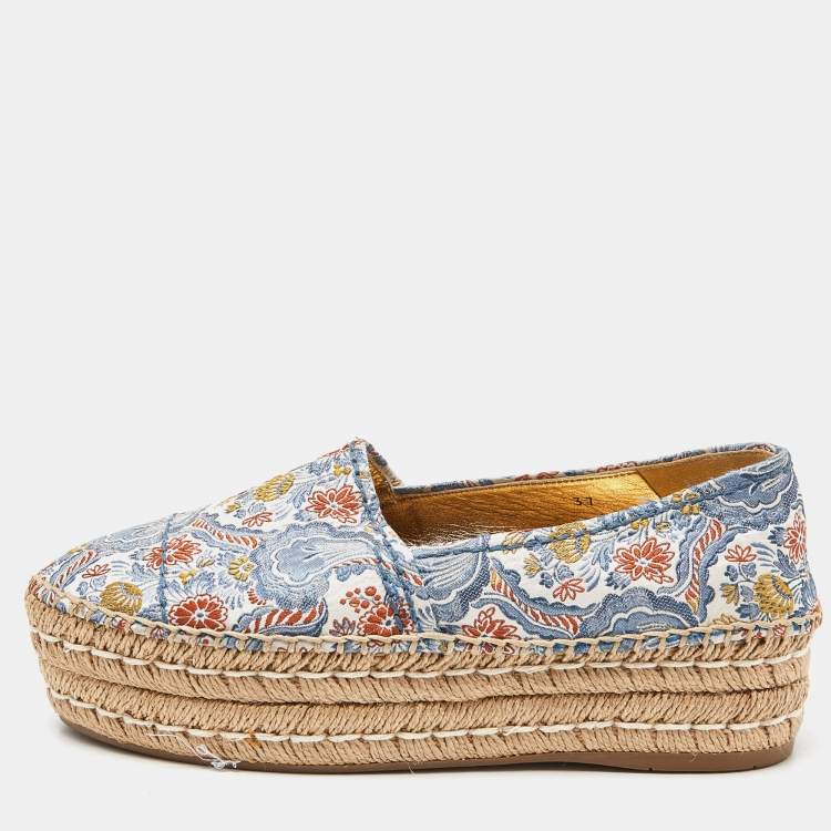 Pre Owned Prada Multicolor Fabric Slip On Espadrilles Flats Size 37