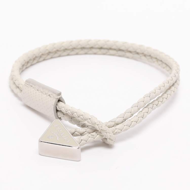 Prada Off-White Braided Leather Triangle Charm Bracelet