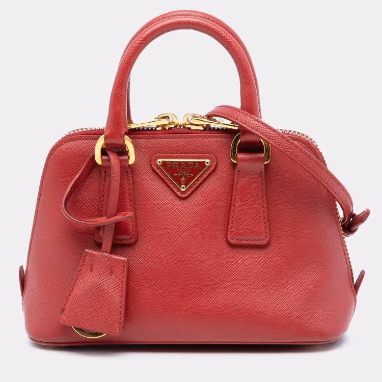 Prada Red Mini Saffiano Lux Promenade Satchel