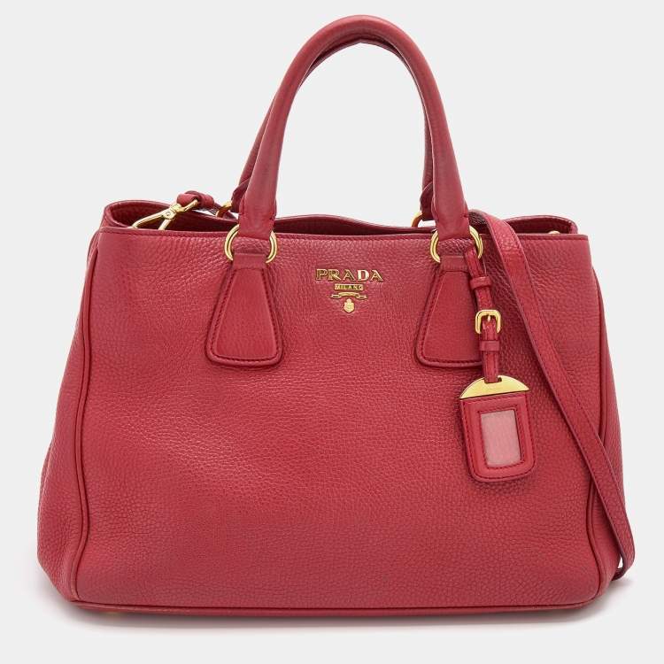 Pre Owned Prada Red Vitello Daino Leather Shopper Tote