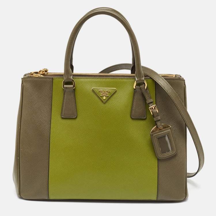 Prada Two Tone Green Saffiano Lux Leather Medium Double Zip Tote