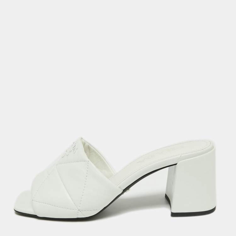 Pre Owned Prada White Quilted Leather Slide Sandals Size 36.5