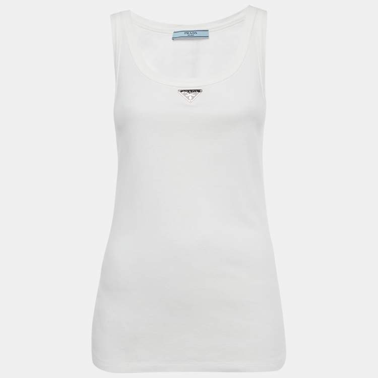 Pre Owned Prada White Triangle Logo Jersey Tank Top S