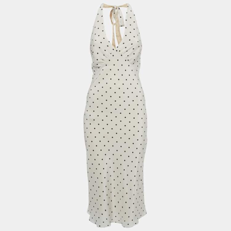 Réalisation Par White Polka Dot Silk Tie Up Halter Neck Dress S