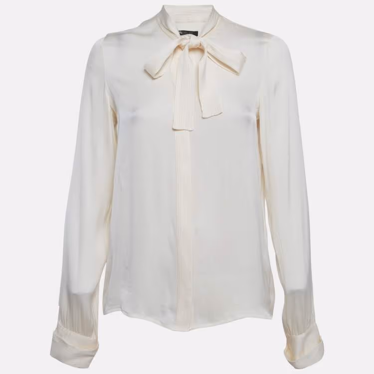 Pre Owned Rachel Zoe Cream Silk Blend Tie Collar Blouse S