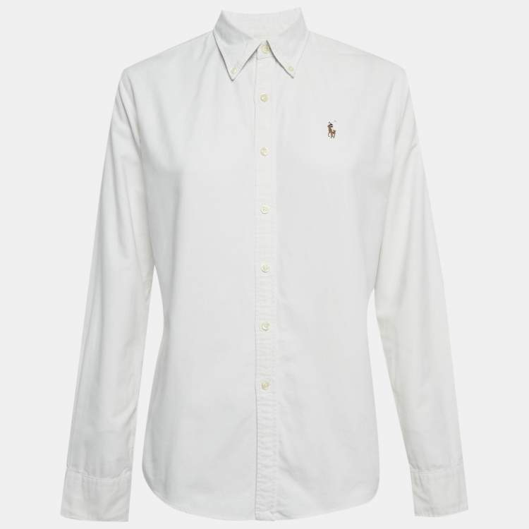 Ralph Lauren White Logo Embroidered Cotton Shirt L