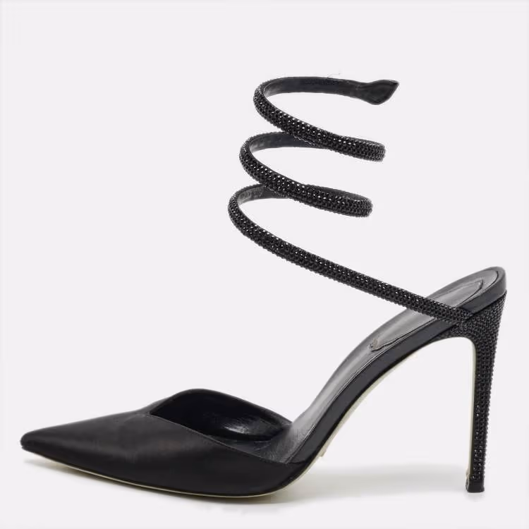 Pre Owned René Caovilla Cleo Crystal Embellished Size 37.5 Black Satin Pumps