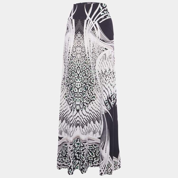 Roberto Cavalli Black Printed Jersey Maxi Skirt L