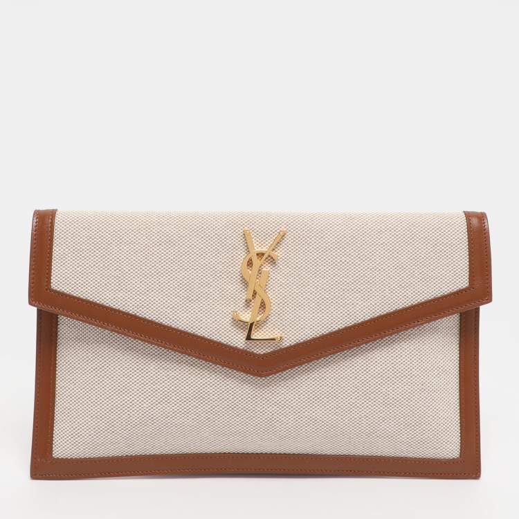 Saint Laurent Beige/Tan Canvas and Leather Uptown Pouch